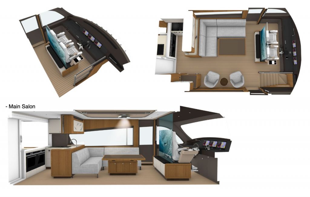 Starting at the aft deck, this will be a wonderful place to relax and admire the al fresco views at all times of the year. The area can easily be covered up as an integral part of the design to create a winter garden. This serves to enlarge the size of the saloon, creating one large indoor-outdoor space when shade is required or there’s a chill in the air.